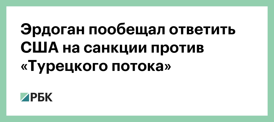«Они без стыда говорят, что введут санкции в связи с «Турецким потоком». Это полное нарушение наших прав», — приводит слова Эрдогана телеканал NTV. Лидер Турции добавил, что в ответ на это Анкара применит санкции.
