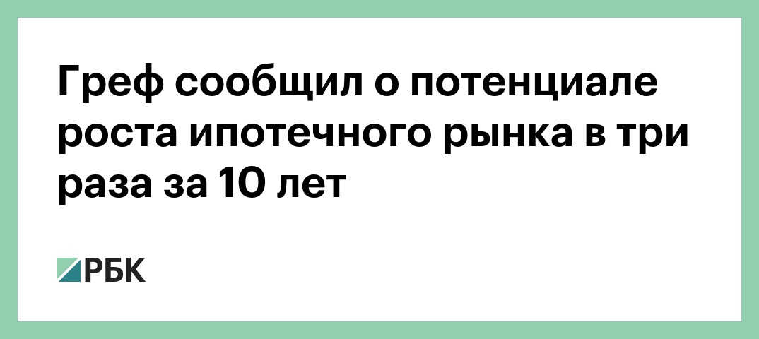 Ипотечный рынок имеет потенциал роста в 2,5–3 раза за ближайшее десять лет, заявил в интервью телеканалу «Россия 24» глава Сбербанка Герман Греф.