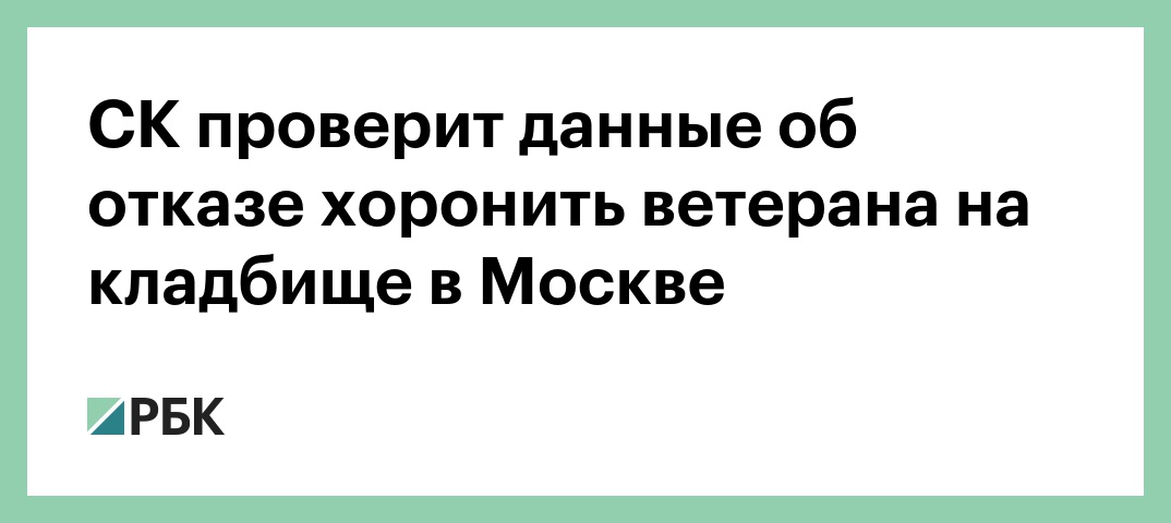 СК проверит данные об отказе хоронить ветерана на кладбище в Москве