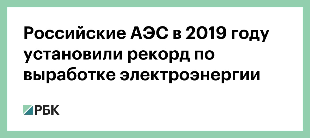 Атомные электростанции (АЭС) в России установили новый рекорд по выработке электроэнергии, выдав по итогам 2019 года в совокупности почти 209 млрд киловатт-часов, сообщается на сайте «Росэнергоатома» (входит в «Росатом»).