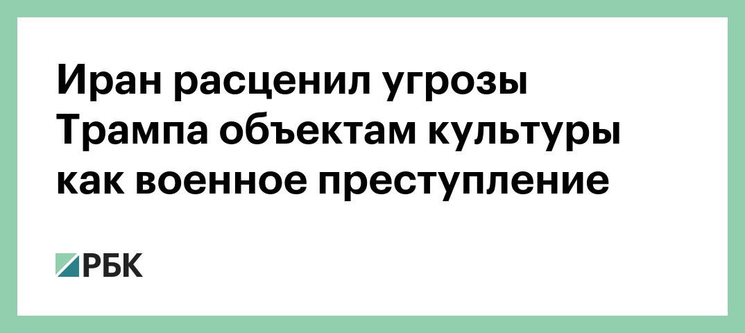 «После серьезных нарушений международного права в трусливых пятничных убийствах (генерала Касема Сулеймани и нескольких человек, которые находились с ним в одной автоколонне. — РБК) Трамп говорит о новых нарушениях. Нападение на культурные объекты является военным преступлением», — говорит Зариф.