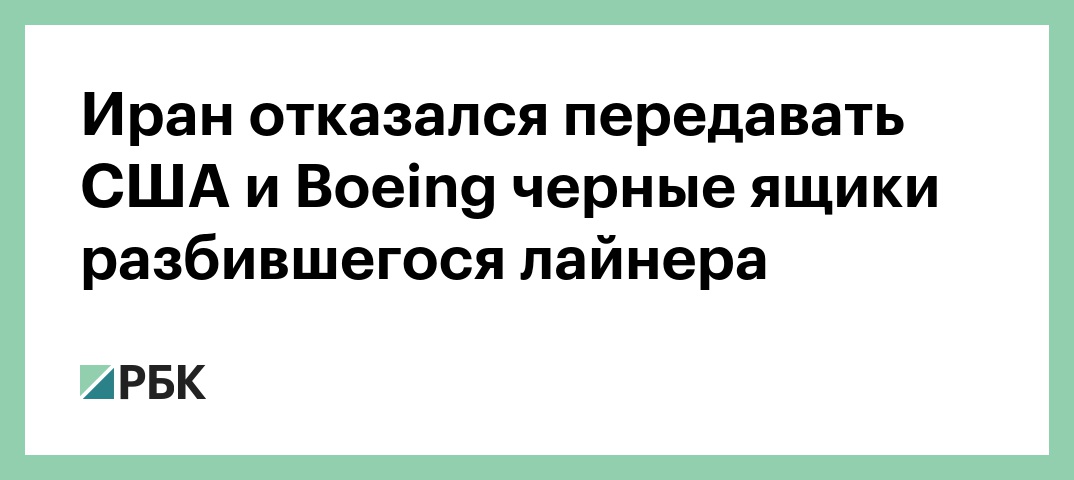 Иран не передаст черные ящики разбившегося украинского авиалайнера компании — производителю Boeing или США, заявил в среду глава Организации гражданской авиации Ирана Али Абедзаде. Об этом сообщает иранское информагентство Mehr.