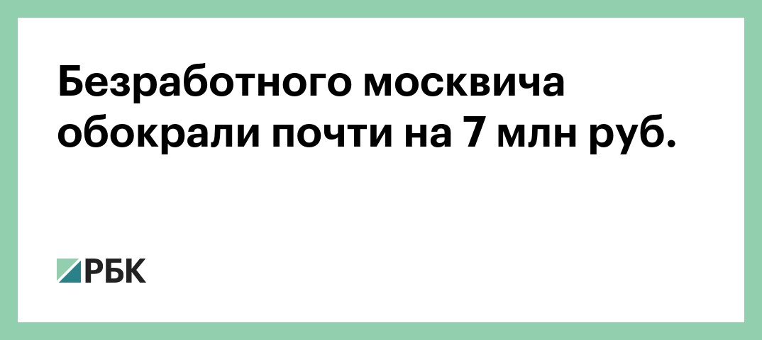 Безработного жителя Москвы обокрали почти на 7 млн руб. Об этом РБК сообщили в пресс-службе столичного ГУ МВД.