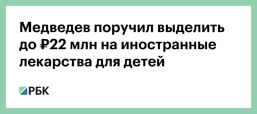 Глава правительства Дмитрий Медведев поручил выделить до 22 млн руб. на покупку зарубежных лекарств для тяжелобольных детей. Соответствующее поручение опубликовано на сайте правительства.
