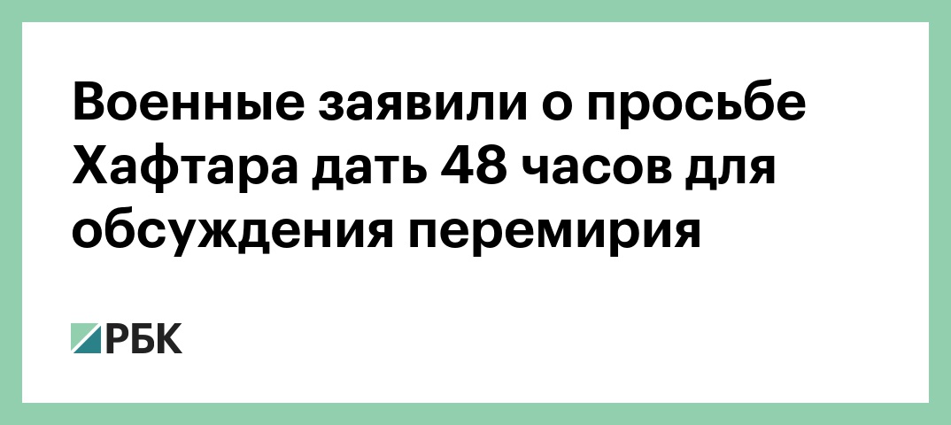 Участвовавший в переговорах в Москве командующий Ливийской национальной армией (ЛНА) маршал Халифа Хафтар позитивно оценил проект итогового соглашения, однако перед подписанием попросил паузу в двое суток «для обсуждения документа с лидерами поддерживающих ЛНА племен». Об этом говорится в сообщении Минобороны России, поступившем в РБК.