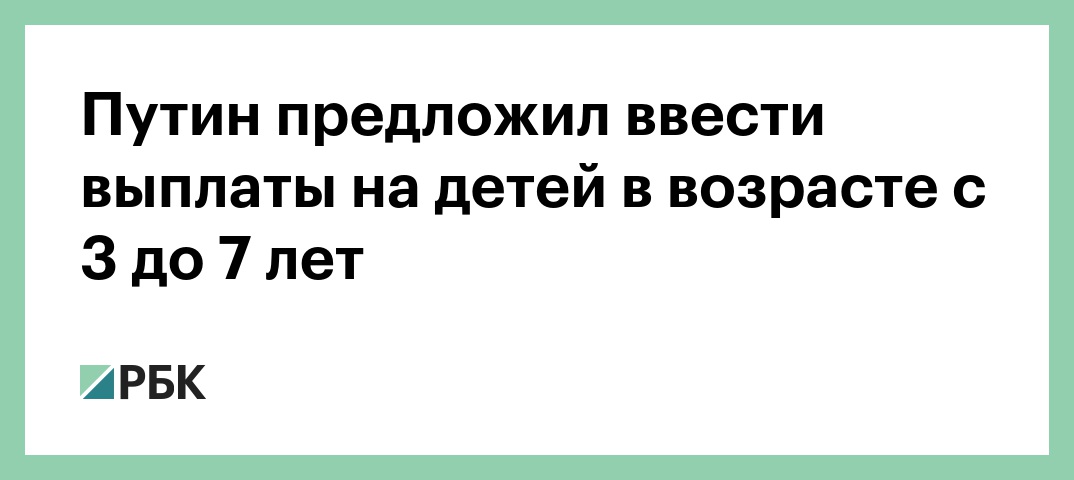 Путин предложил ввести выплаты на детей в возрасте с 3 до 7 лет