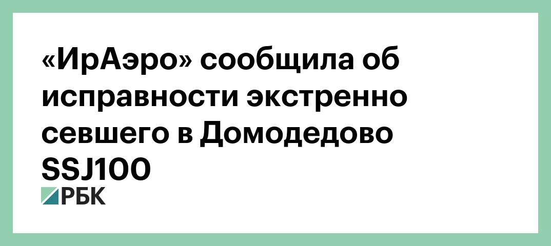 Самолет SSJ100, совершивший экстренную посадку в Домодедово, технически исправен, сообщили РБК в пресс-службе авиакомпании «ИрАэро».