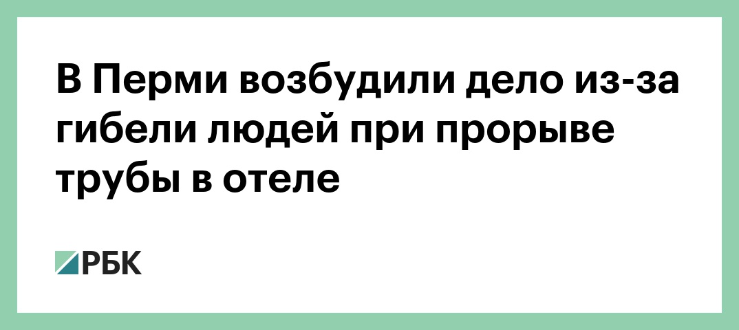После гибели пяти человек из-за прорыва трубы с горячей водой в расположенном на цокольном этаже мини-отеле «Карамель» в Перми возбуждено уголовное дело об оказании услуг, не отвечающих требованиям жизни и здоровья потребителей, повлекшем по неосторожности смерть двух или более лиц (ч. 3 ст. 238 УК), сообщается на сайте регионального управления Следственного комитета.
