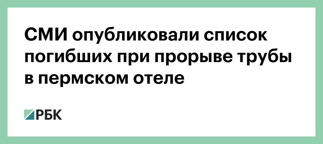 Интернет-издание 59.ru со ссылкой на источник опубликовало список погибших в результате прорыва трубы с горячей водой в пермском мини-отеле «Карамель». Также фамилии погибших и пострадавших сообщает Telegram-канал Life Shot.