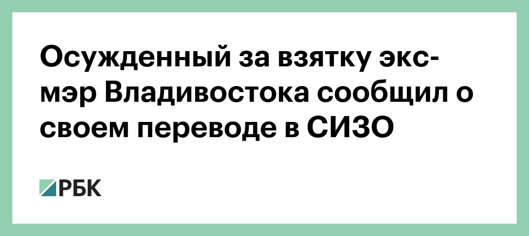 Осужденный за взятку экс-мэр Владивостока сообщил о своем переводе в СИЗО