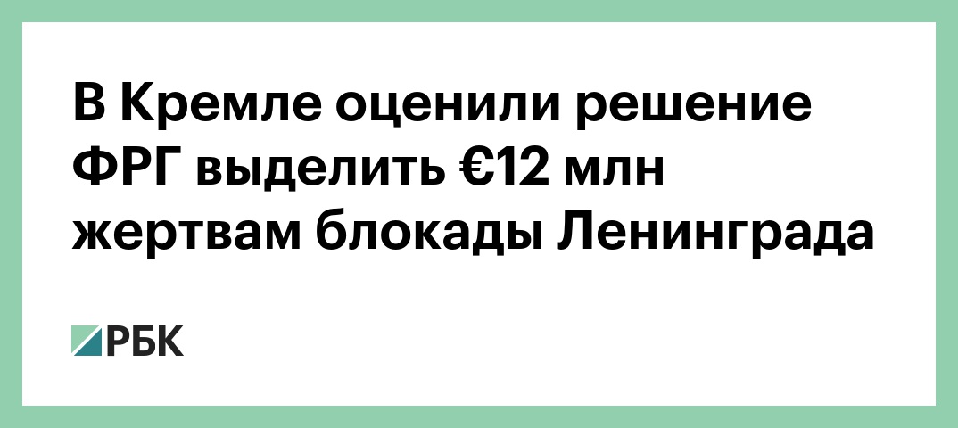 Решение ФРГ выделить €12 млн для помощи жертвам блокады Ленинграда заслуживает высокой оценки, сообщил пресс-секретарь российского президента Дмитрий Песков. Его слова передает корреспондент РБК.
