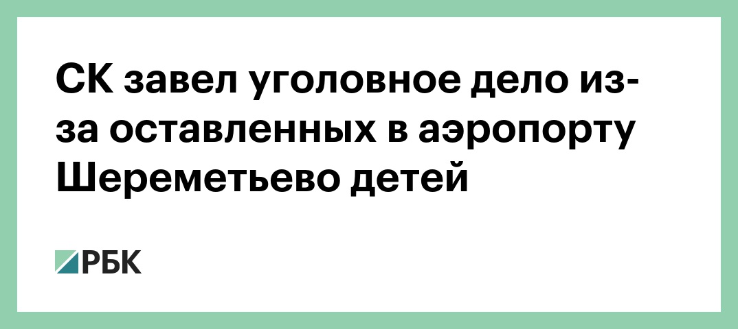 Следственный комитет (СК) завел уголовное дело по факту оставления двоих малолетних детей (2011 и 2014 годов рождения) их отцом в аэропорту Шереметьево. В сообщении ведомства отмечается, что дело возбуждено по признакам преступления, предусмотренного ст. 125 УК РФ (оставление в опасности).