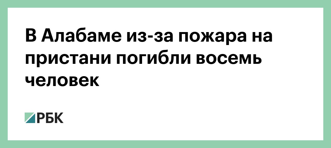 В американском городе Скоттсборо (штат Алабама) на пристани произошел крупный пожар, в результате которого погибли по меньшей мере восемь человек и семеро были госпитализированы. Об этом сообщает Associated Press со ссылкой на начальника пожарной охраны города.