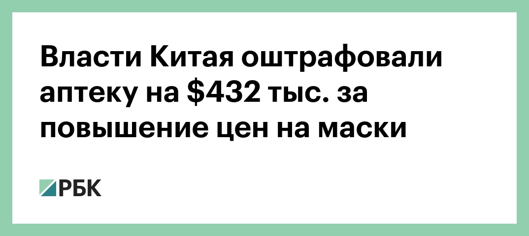 Власти Китая оштрафовали аптеку в городе Тяньцзинь на $432 тыс. (около 26,9 млн руб.) за повышение цен на маски во время пика заболеваемости коронавирусом. Об этом сообщается на сайте правительства страны.