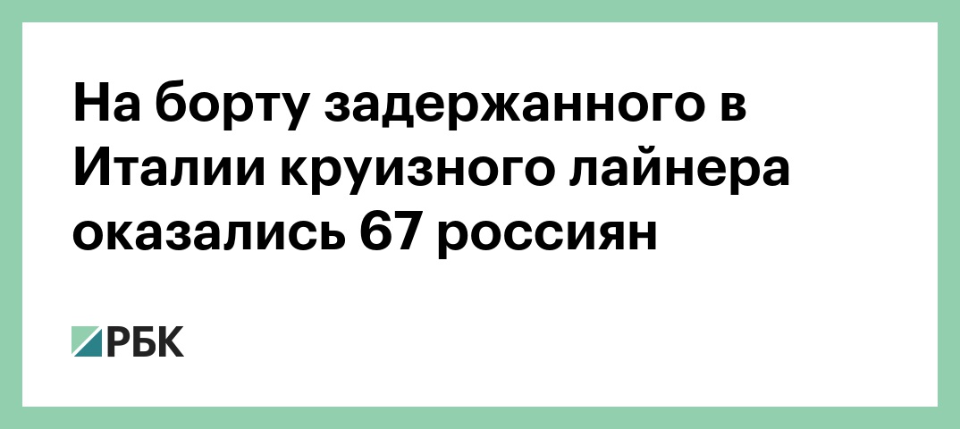На борту круизного лайнера Costa Smeralda, задержанного в Италии из-за пассажиров с подозрением на коронавирус, находятся 67 граждан России. Об этом РБК сообщили в посольстве России в Италии.