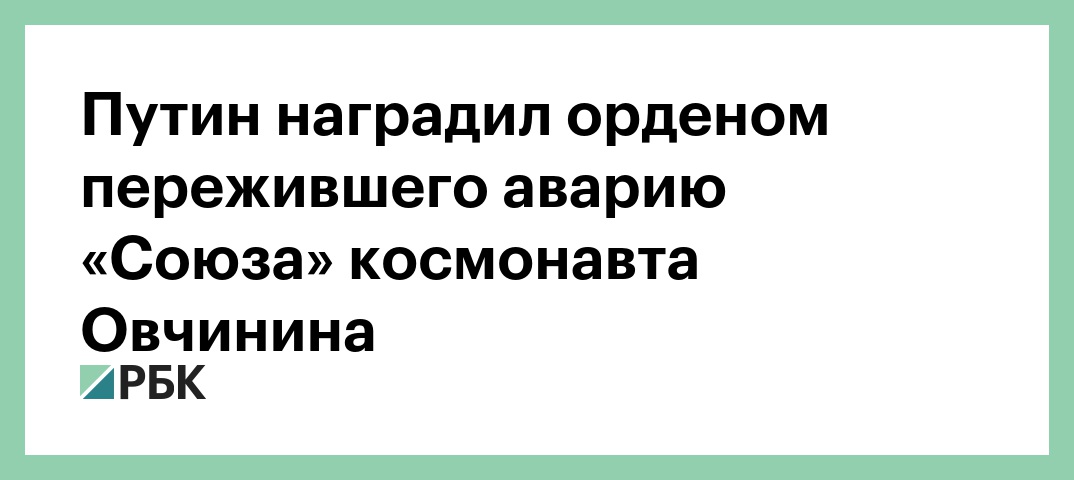 Путин наградил орденом пережившего аварию «Союза» космонавта Овчинина