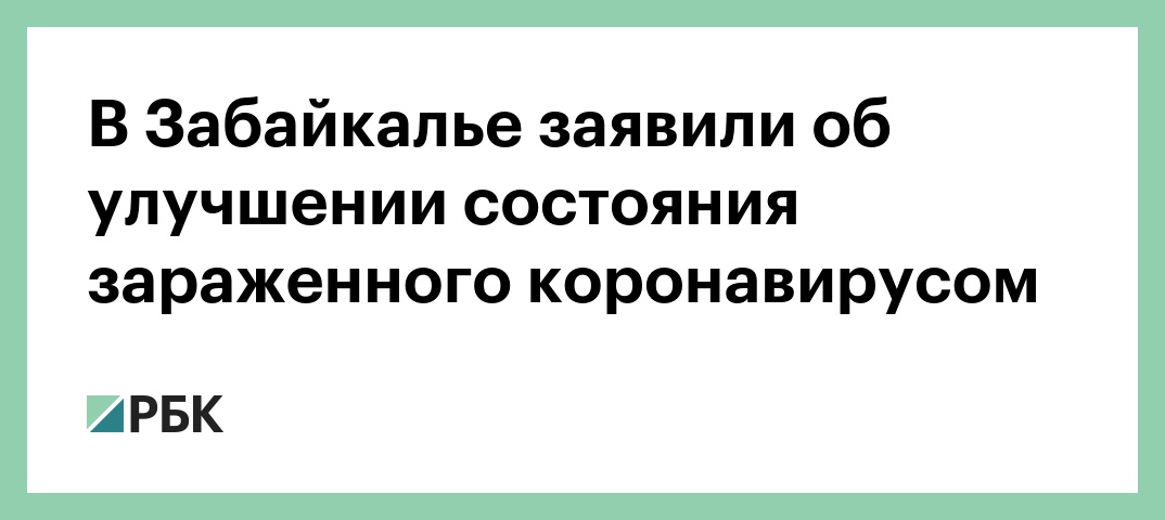 В Забайкалье заявили об улучшении состояния зараженного коронавирусом