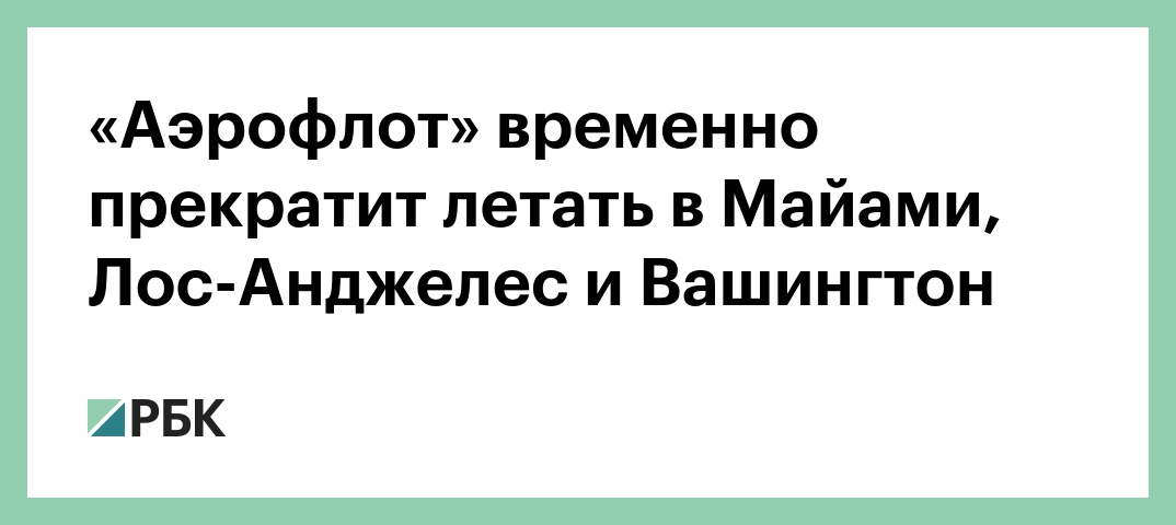 «Аэрофлот» временно прекратит летать в Майами, Лос-Анджелес и Вашингтон