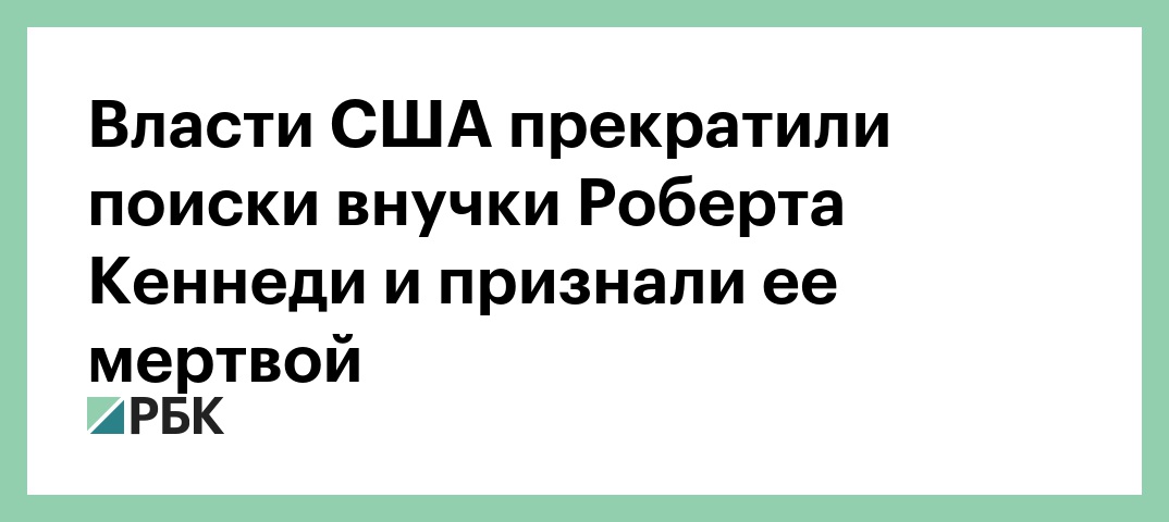 Спасательные службы прекратили поиски Мейв Кеннеди Таунсенд Маккин — внучки бывшего генпрокурора США Роберта Кеннеди, брата 35-го американского президента Джона Кеннеди. Об этом пишет USA Today.