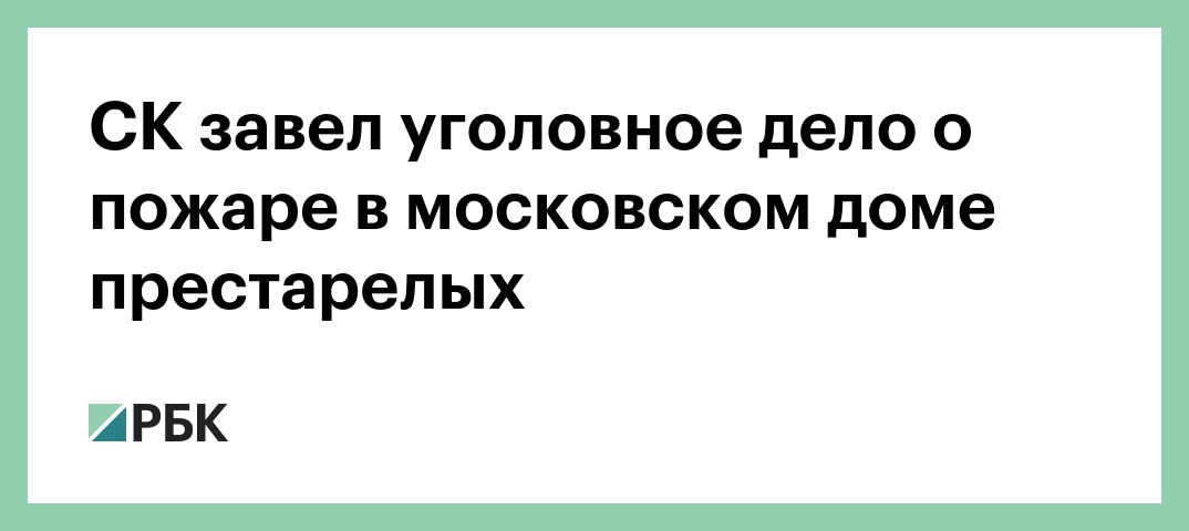 Следственный комитет возбудил уголовное дело по факту пожара в доме престарелых на западе Москвы. Об этом РБК сообщили в пресс-службе столичного управления СК.