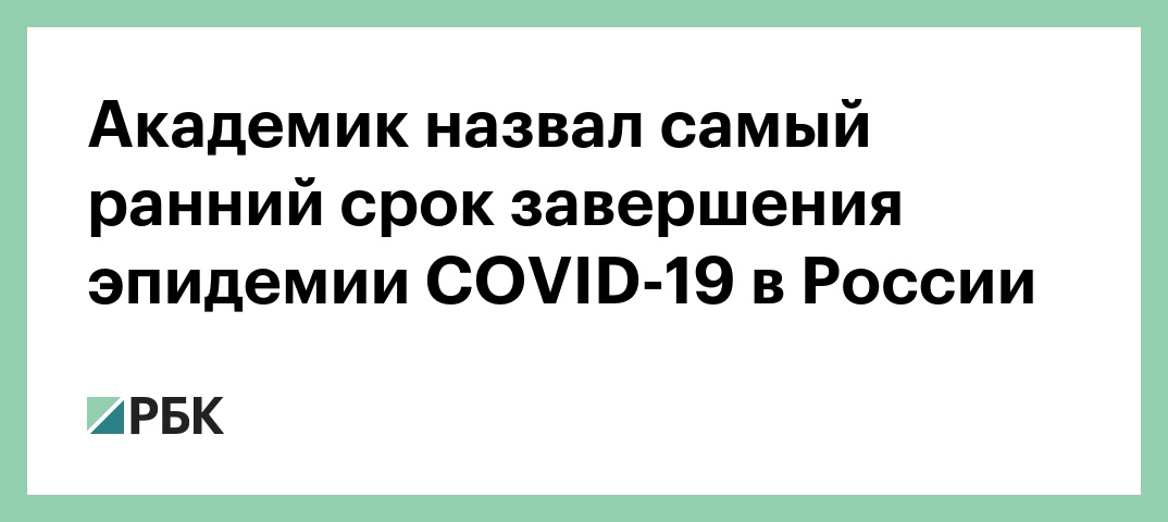 Академик назвал самый ранний срок завершения эпидемии COVID-19 в России