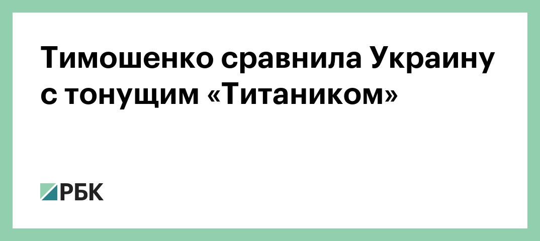 Лидер оппозиционной партии «Батькивщина» Юлия Тимошенко сравнила Украину с лайнером «Титаник», потерпевшим крушение в Северной Атлантике после столкновения с айсбергом. Такое мнение Тимошенко озвучила на заседании согласительного совета фракций Верховной рады, сообщает телеканал «112».
