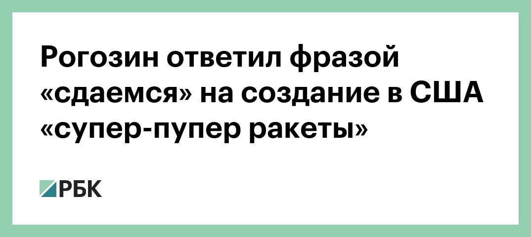 Рогозин ответил фразой «сдаемся» на создание в США «супер-пупер ракеты»