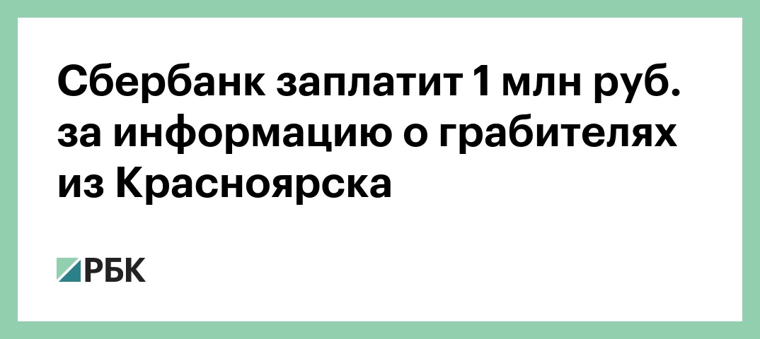 Сбербанк заплатит 1 млн руб. за информацию о грабителях из Красноярска