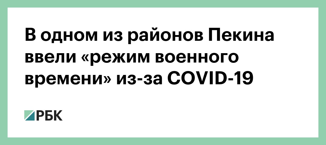 В пекинском районе Фэнтай ввели режим военного положения, после того как на местном оптовом рынке была зафиксирована вспышка коронавируса. Об этом заявил на пресс-конференции исполняющий обязанности главы района Чу Цзюньвэй, передает издание Sina.