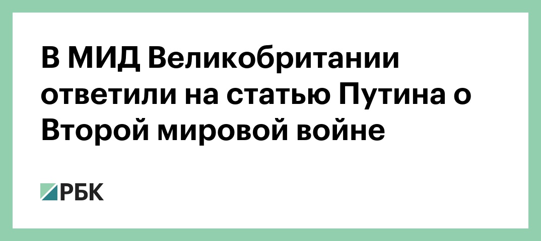 Так он прокомментировал статью президента России Владимира Путина, опубликованную ранее в журнале The National Interest. Как пишет Путин, ответственность за начало войны так или иначе несут все ведущие мировые государства, а говорить о том, что к войне привел «двухдневный визит в Москву министра иностранных дел нацистов Риббентропа», несправедливо. В то же время президент отметил, что Россия всегда будет благодарна за помощь союзников в годы войны.