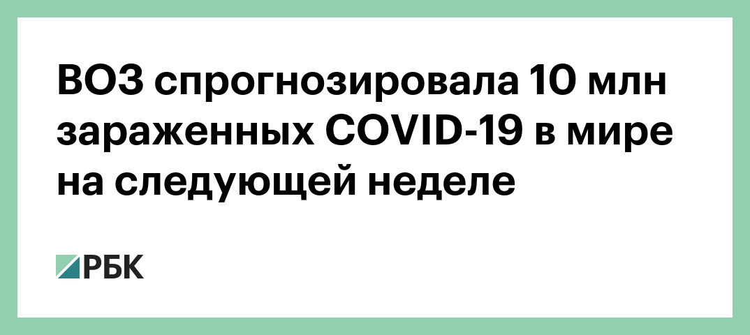Число зараженных коронавирусом в мире на следующей неделе превысит 10 млн человек. Об этом сообщил генеральный директор Всемирной организации здравоохранения Тедрос Аданом Гебрейесус. Запись брифинга доступна на сайте организации.