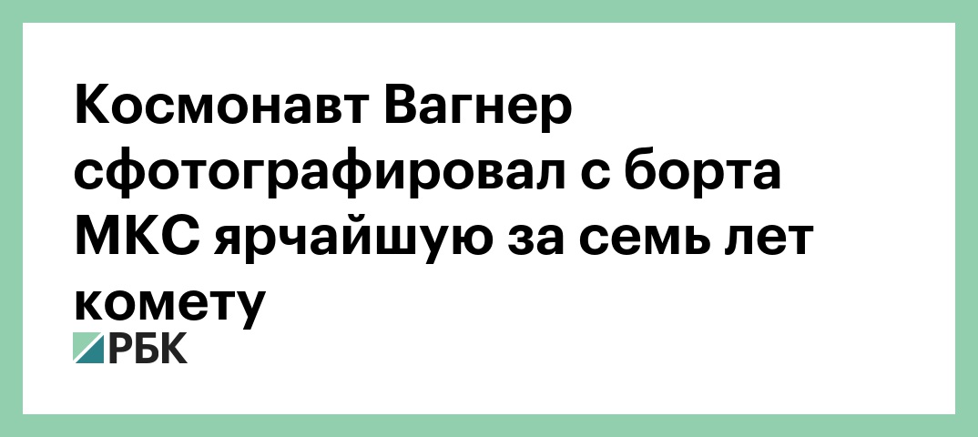 Космонавт Вагнер сфотографировал с борта МКС ярчайшую за семь лет комету