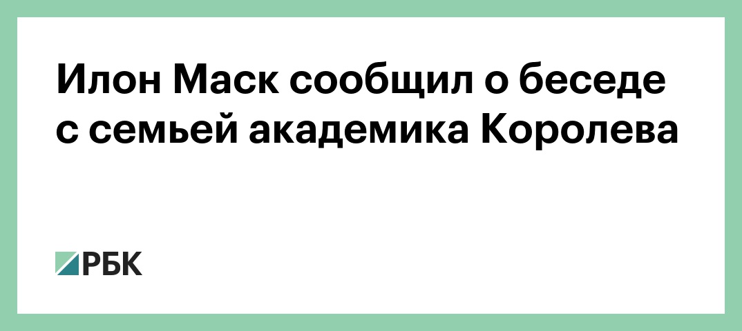 Основатель аэрокосмической компании SpaceX и глава Tesla Илон Маск сообщил в Twitter, что он провел беседу с семьей советского инженера-конструктора и академика Сергея Королева.