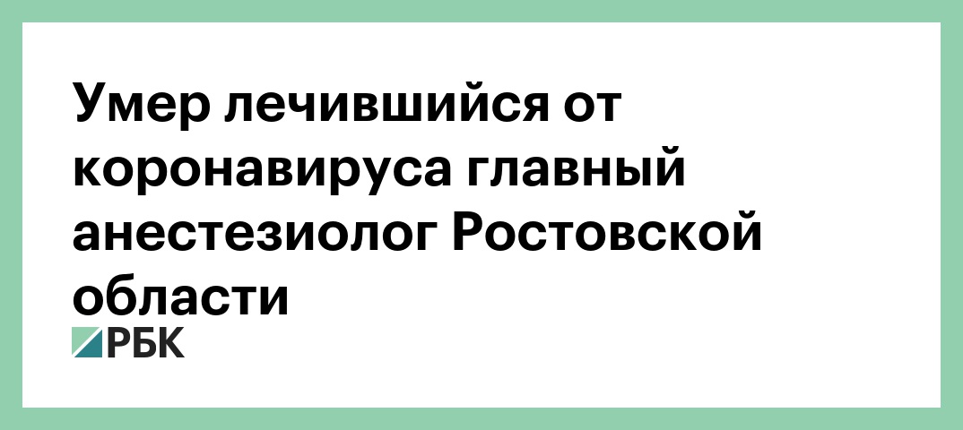 Умер лечившийся от коронавируса главный анестезиолог Ростовской области