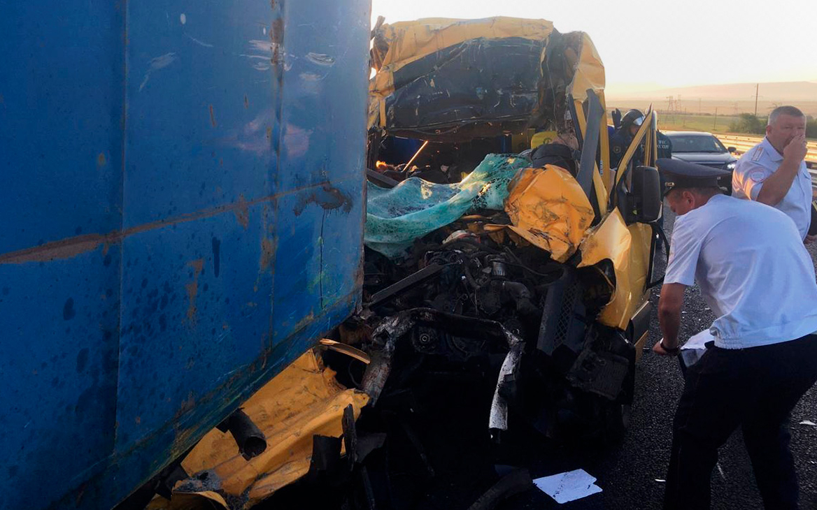 Авария произошла в 05:15 утра в Белогорском районе Крыма. Микроавтобус следовал из Краснодара в Севастополь. По данным регионального СК, он перевозил туристов, которые ехали на отдых. По предварительной версии, водитель уснул за рулем, после чего автобус врезался в грузовик.
