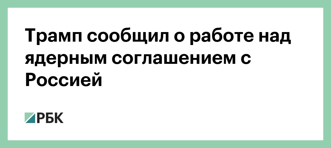«Мы сейчас работаем с Россией над соглашением о нераспространении ядерного оружия, и, если нам удастся нечто подобное, будет здорово», — сказал Трамп.
