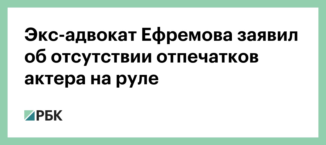 «За рулем отпечатки пальцев другого человека, не Ефремова. <...> Пальчики Ефремова там отсутствуют», — сказал юрист.