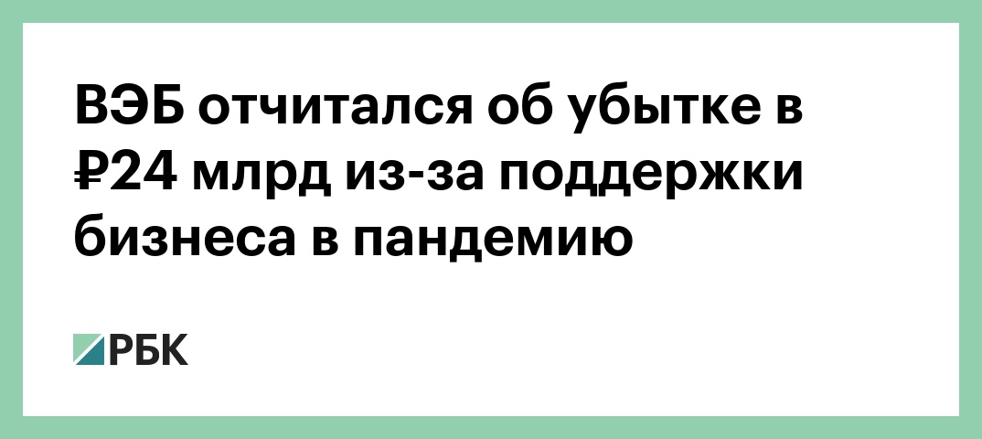 ВЭБ отчитался об убытке в ₽24 млрд из-за поддержки бизнеса в пандемию
