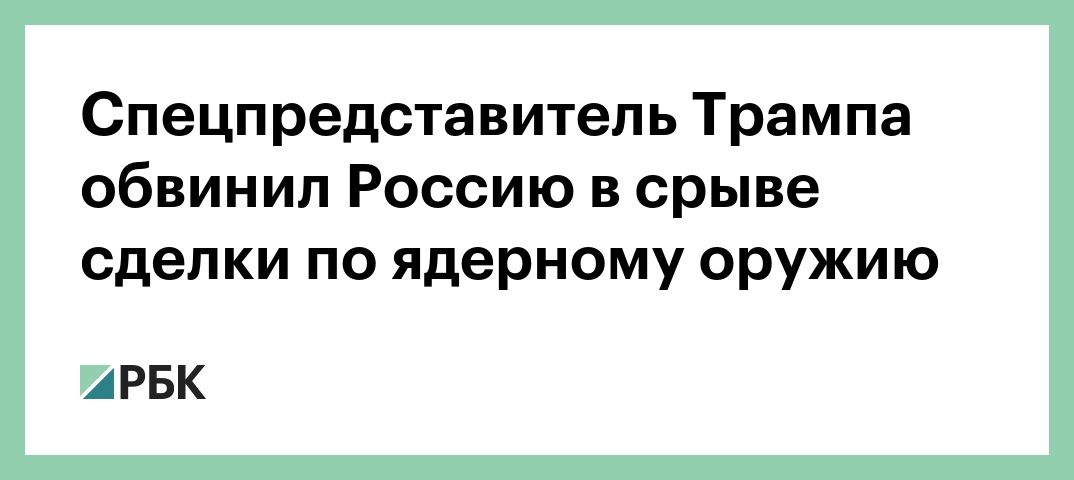 Спецпредставитель Трампа обвинил Россию в срыве сделки по ядерному оружию