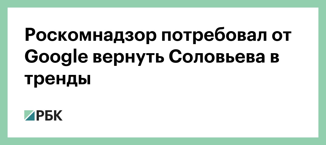 Роскомнадзор потребовал от Google вернуть Соловьева в тренды