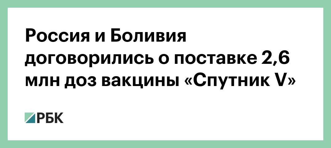 Россия и Боливия договорились о поставке 2,6 млн доз вакцины «Спутник V»