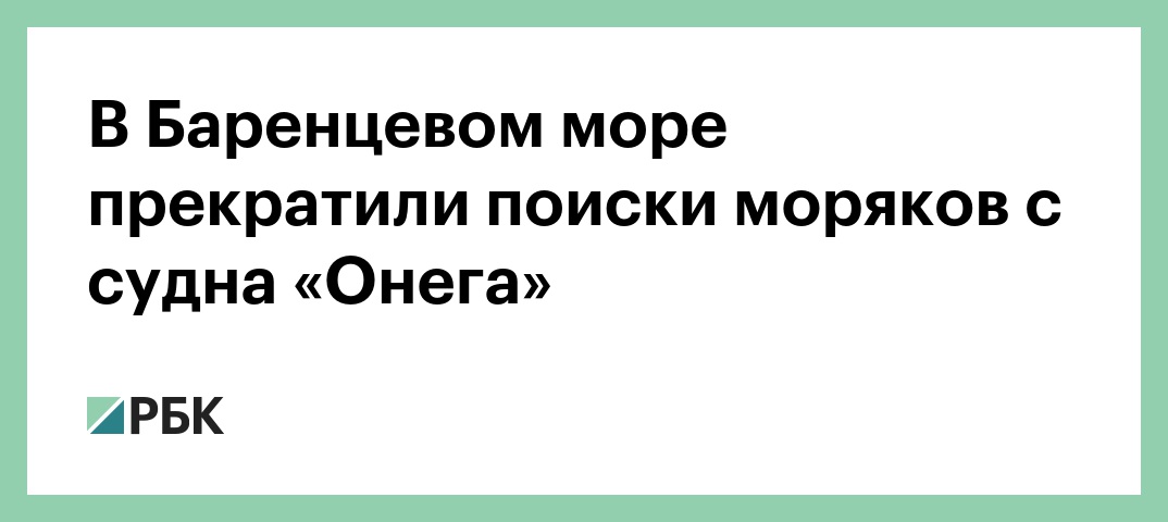 Поисково-спасательная операция в районе крушения судна «Онега» в Баренцевом море, где пропали 17 моряков, завершена, тела погибших не найдены. Об этом сообщили в пресс-службе Росморречфлота, передает ТАСС. Позднее представитель ведомства подтвердил это РБК. «Поиски членов экипажа рыболовецкого судна «Онега» прекращены. Пострадавших и объектов поиска не обнаружено. С 30 декабря по 2 января они продолжали поисковую операцию своими силами — два траулера и морской буксир», — сообщили в пресс-службе Росморречфлота со ссылкой на информацию, поступившую из Росрыболовства.