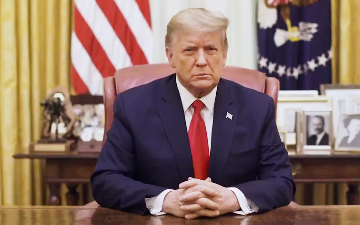 В обращении президент осудил сопровождавшийся потасовками прорыв его людей в здание Капитолия, при котором погибли пять человек. Трамп, чей аккаунт в Twitter заблокировали, также заявил о беспрецедентном нападении на свободу слова