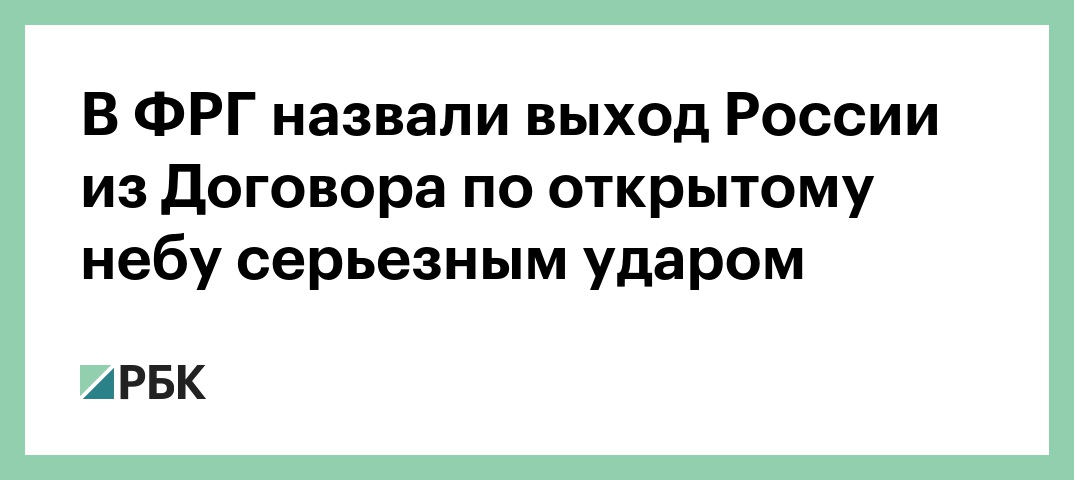 В Министерстве иностранных дел ФРГ назвали заявление России о начале подготовки к выходу из Договора по открытому небу «серьезным ударом для глобальной архитектуры контроля над вооружениями». Соответствующее сообщение опубликовано в Twitter.