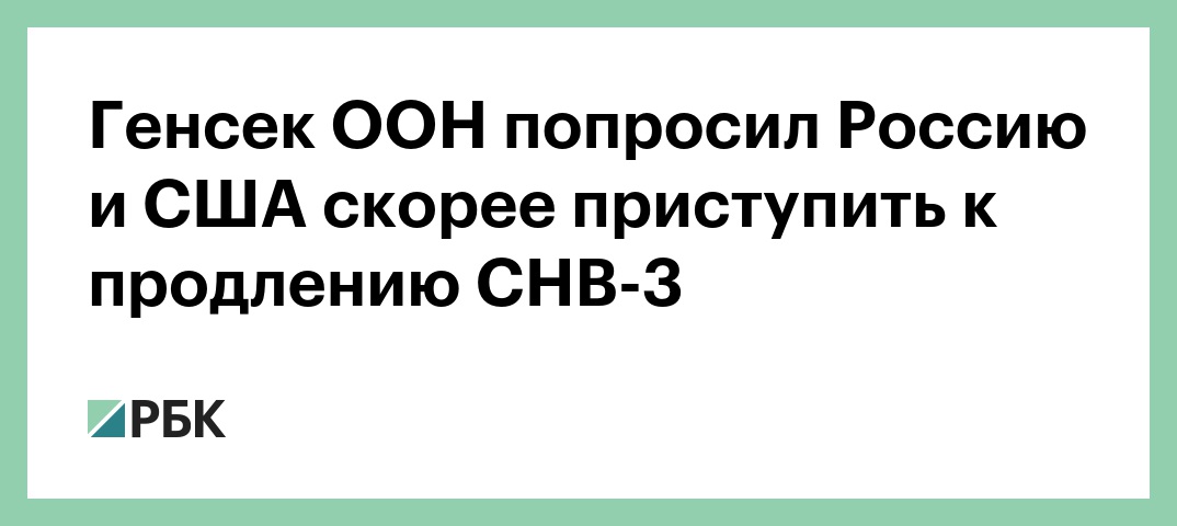 Генеральный секретарь ООН Антониу Гутерриш попросил Россию и США действовать быстро, чтобы успеть продлить Договор о сокращении стратегических наступательных вооружений (СНВ-3), который истекает 5 февраля. Об этом заявил официальный представитель генсека Стефан Дюжаррик.