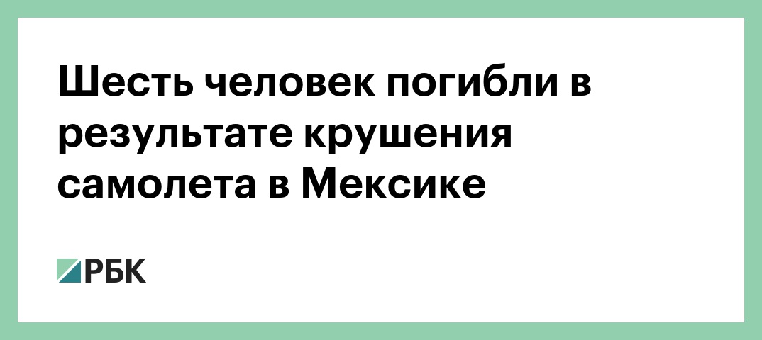 Шесть человек погибли в результате крушения самолета в мексиканском штате Сонора, сообщает прокуратура штата в своем Twitter.