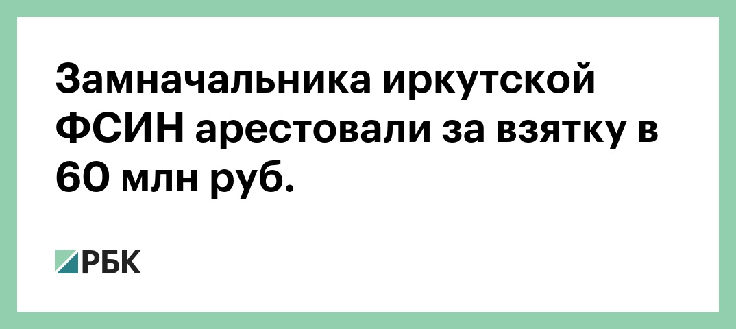 Замначальника иркутской ФСИН арестовали за взятку в 60 млн руб.