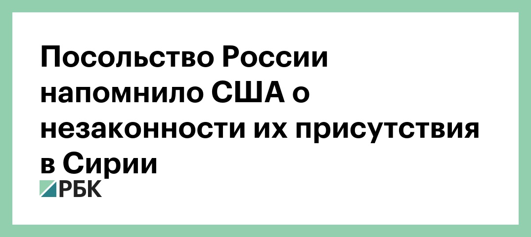 Посольство России в США напомнило, что военное присутствие Соединенных Штатов в Сирии незаконно. Об этом говорится в сообщении российского дипломатического представительства в Twitter.