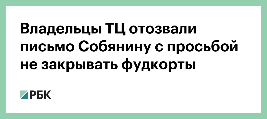 В субботу, 12 июня, Собянин объявил о новых ограничениях в связи с ростом заболеваемости COVID-19, в частности, о приостановке работы фудкортов в ТЦ с 13 по 20 июня. После этого РСТЦ направил мэру письмо с просьбой дать фудкортам возможность продолжить работу с необходимыми из-за коронавируса ограничениями.