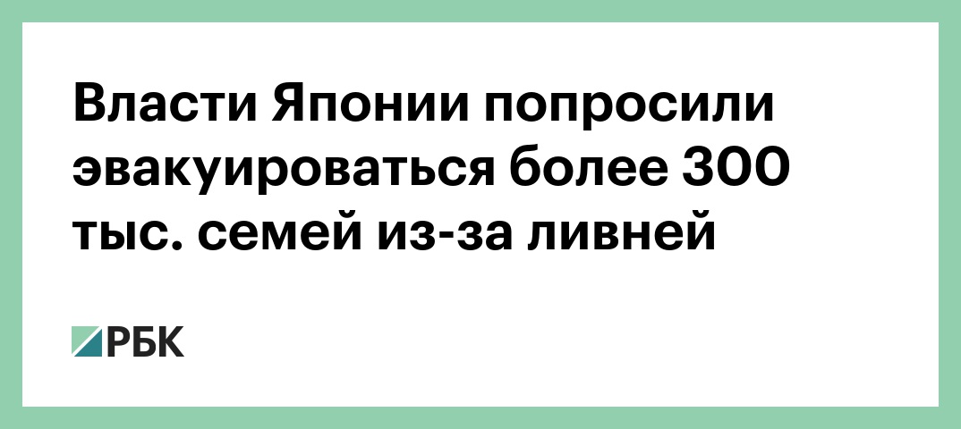 Из-за сильных ливней японские власти посоветовали эвакуироваться примерно 360 тыс. семей, передает телеканал NHK.